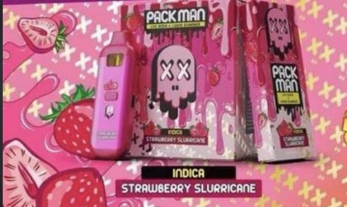 Buy Packman Strawberry Slurricane Disposable, Even though this strain is 70/30 Indica dominant, patients find that the happy, uplifting high head and calming body buzz delivered by strawberry slurricane helps them deal with mental health problems like anxiety, stress, and depression. They say it is best at erasing negative thoughts and worries while relaxing their body and Packman vape mind Packman Strawberry 2g.